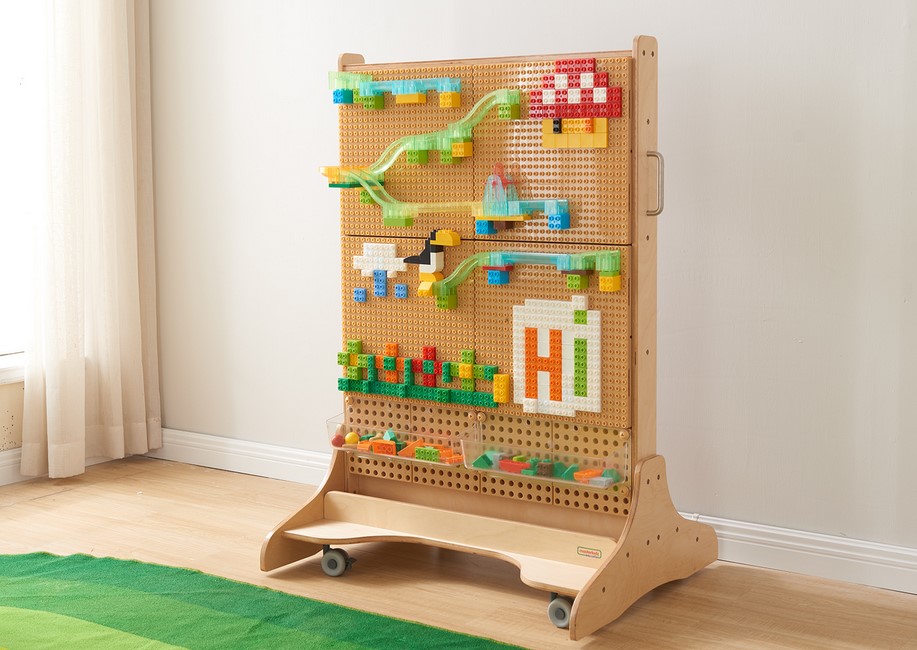 Игровой набор представлен в виде конструктора, состоящего из 359 разноцветных деталей (строительные блоки разных размеров, желоба разной формы и шарики.) Является дополнением к STEM-стене.