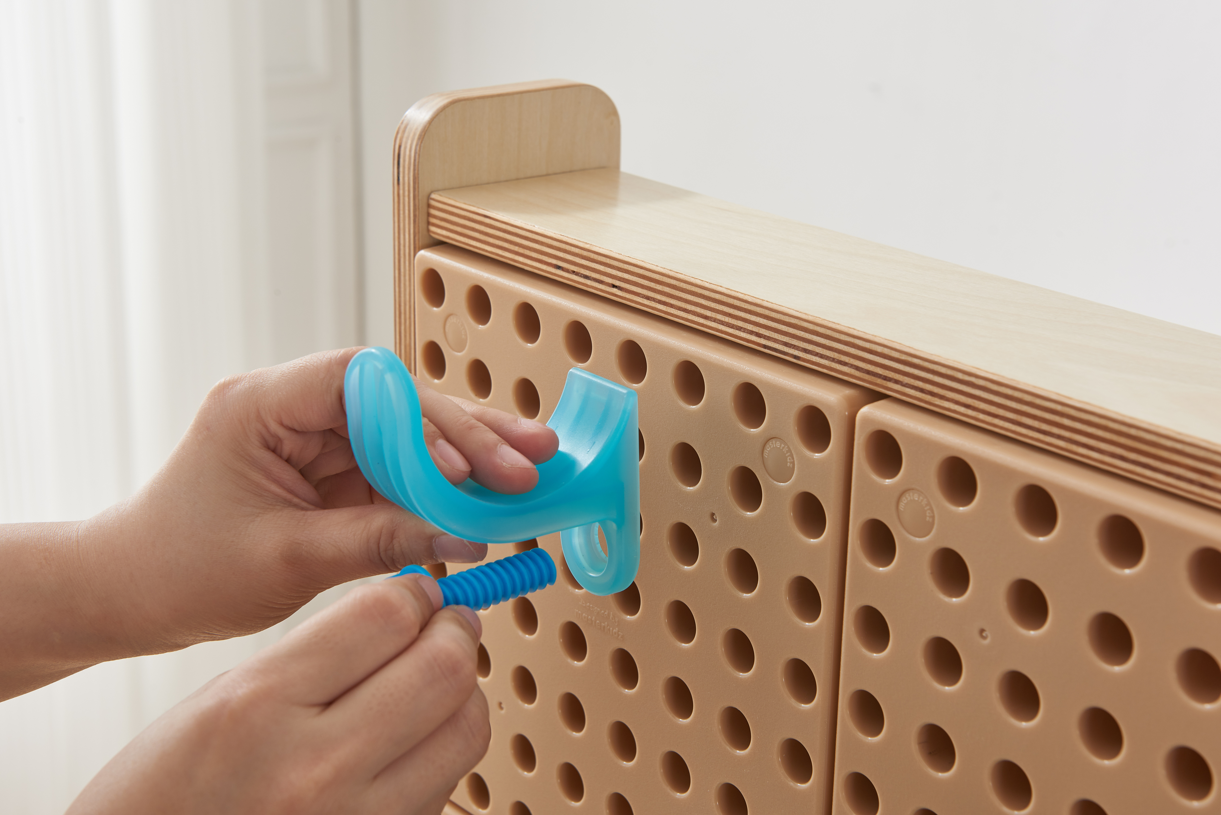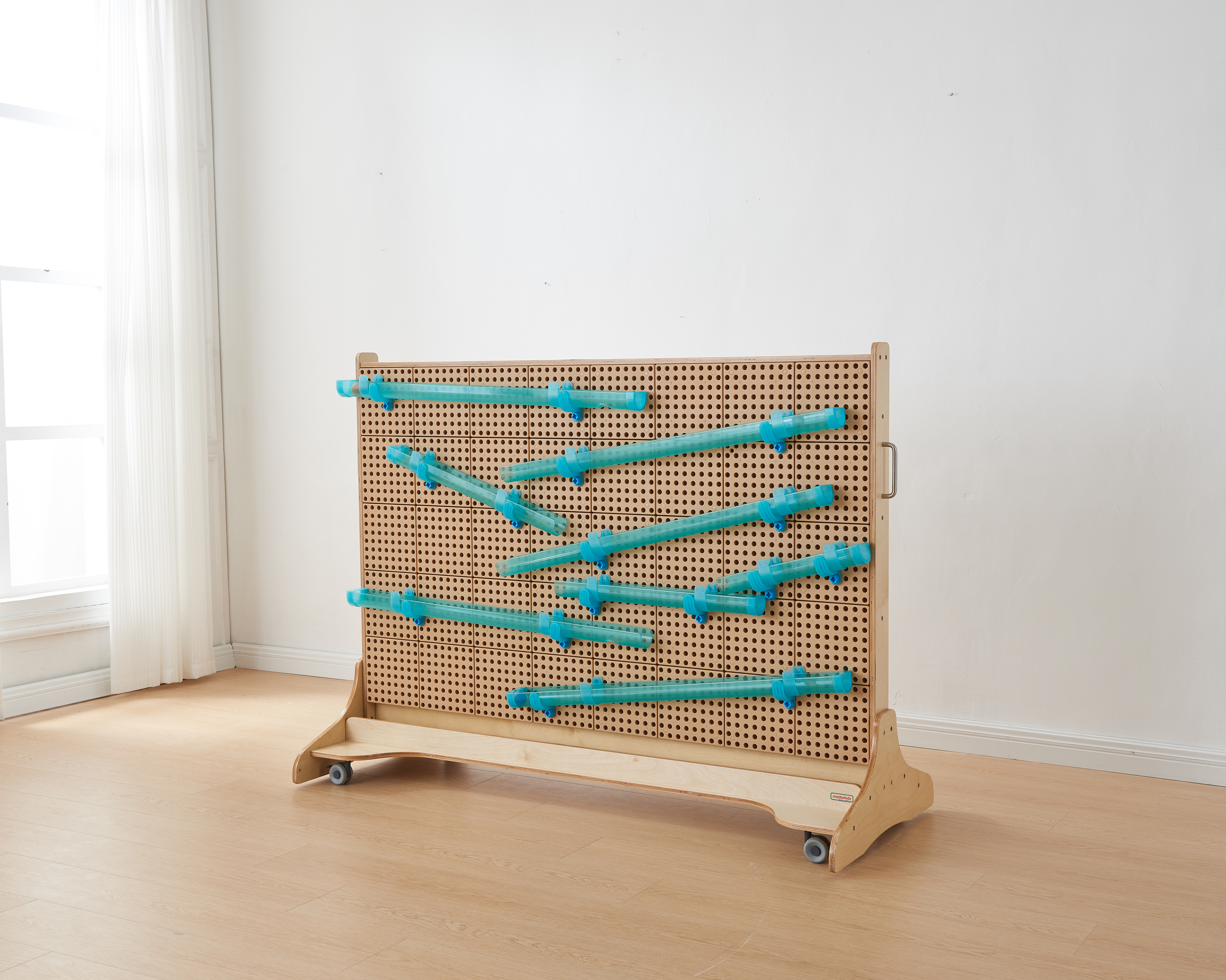 Набор состоит из 92 деталей, которые позволяют детям создавать бесконечное множество различных конфигураций на STEM стене.